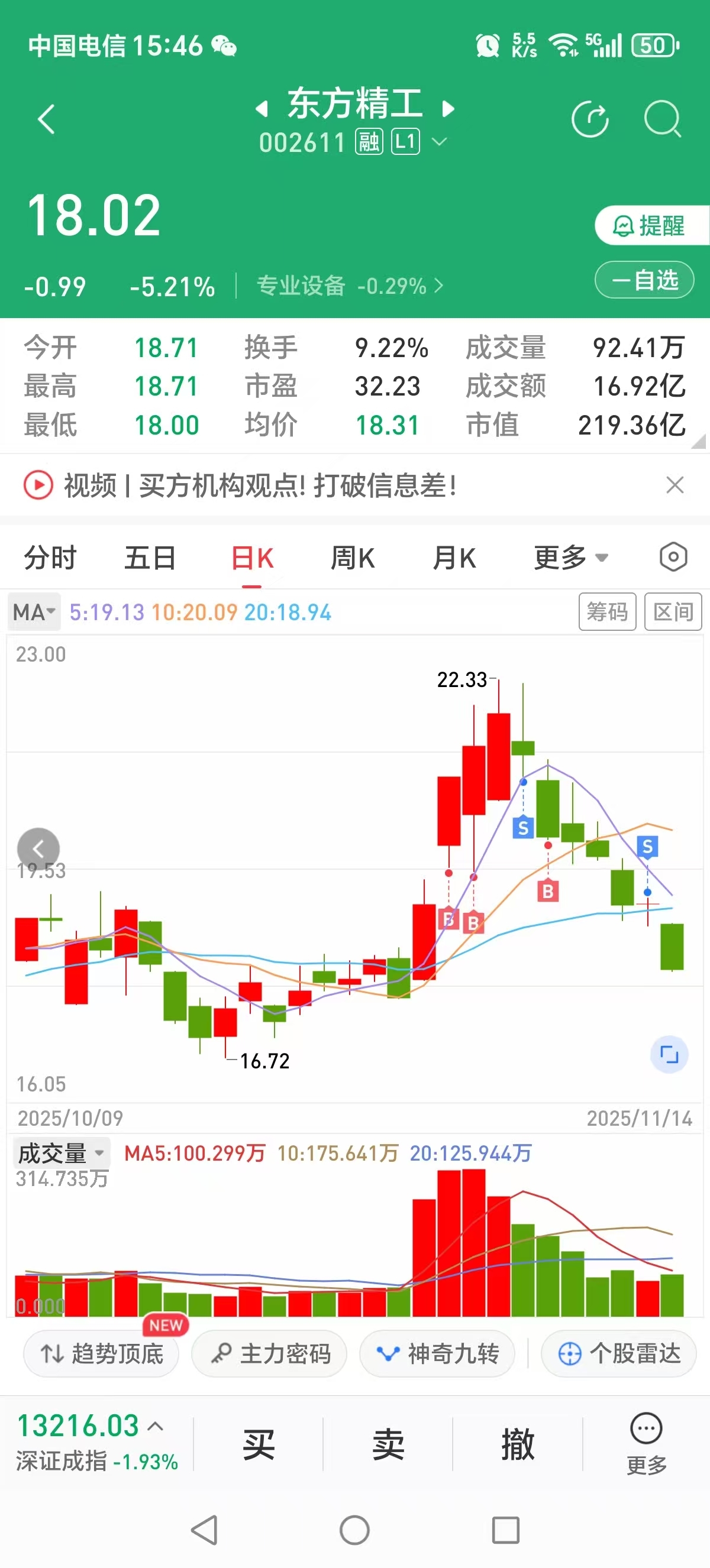 $东方精工(SZ002611)$ 幸亏昨天坚决斩仓一股不留,保住了最后的1000块利润。