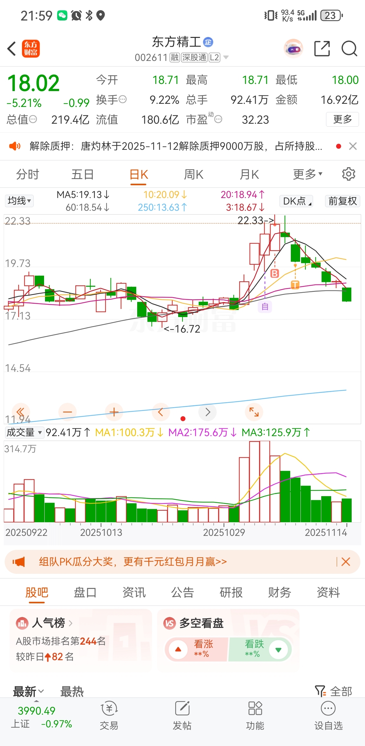 $东方精工(SZ002611)$ 一个字,惨!三个字,惨!惨!惨!