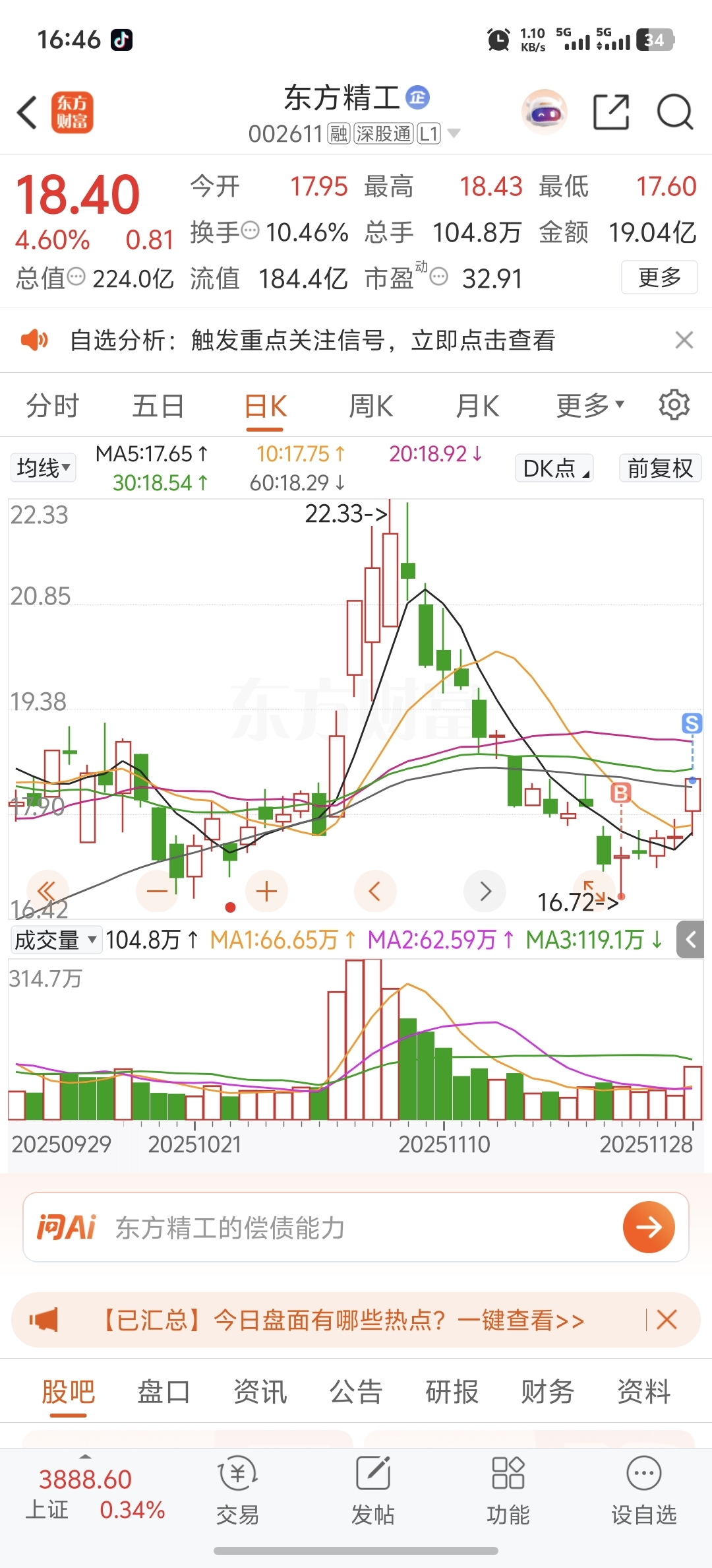 $东方精工(SZ002611)$ 希望车门不要焊死,再给我个上车的机会