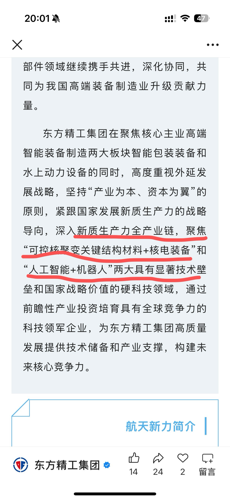 原有传统主业卖出,聚焦机器人和核聚变产业两条主线,投了乐聚机器人,航天新力等