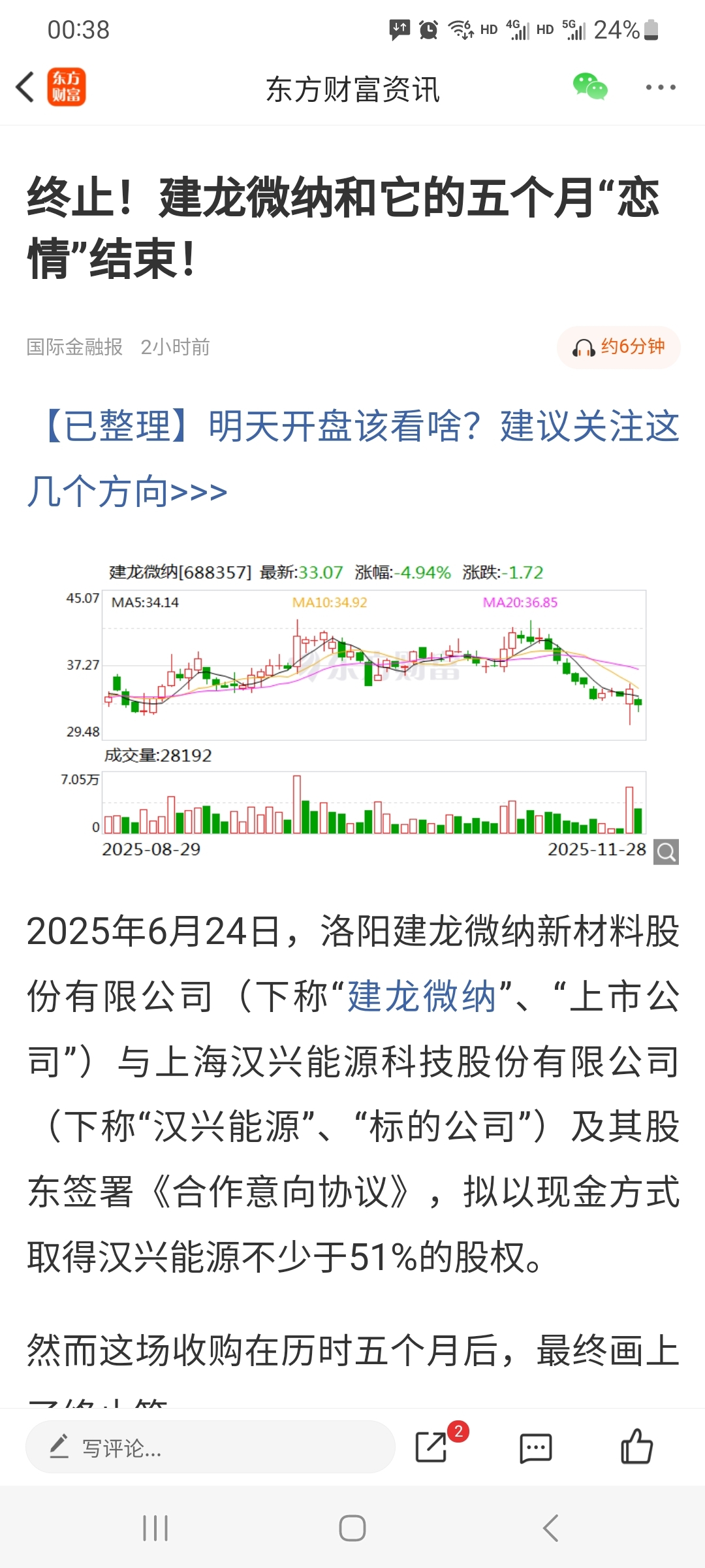 老韭菜深知上市公司重组是个套,如果我早知东方精工要卖资产重组,我打死也不会买的,没办法买了就偏偏要发生重组,重组害人,建龙微纳又宣布终止了。