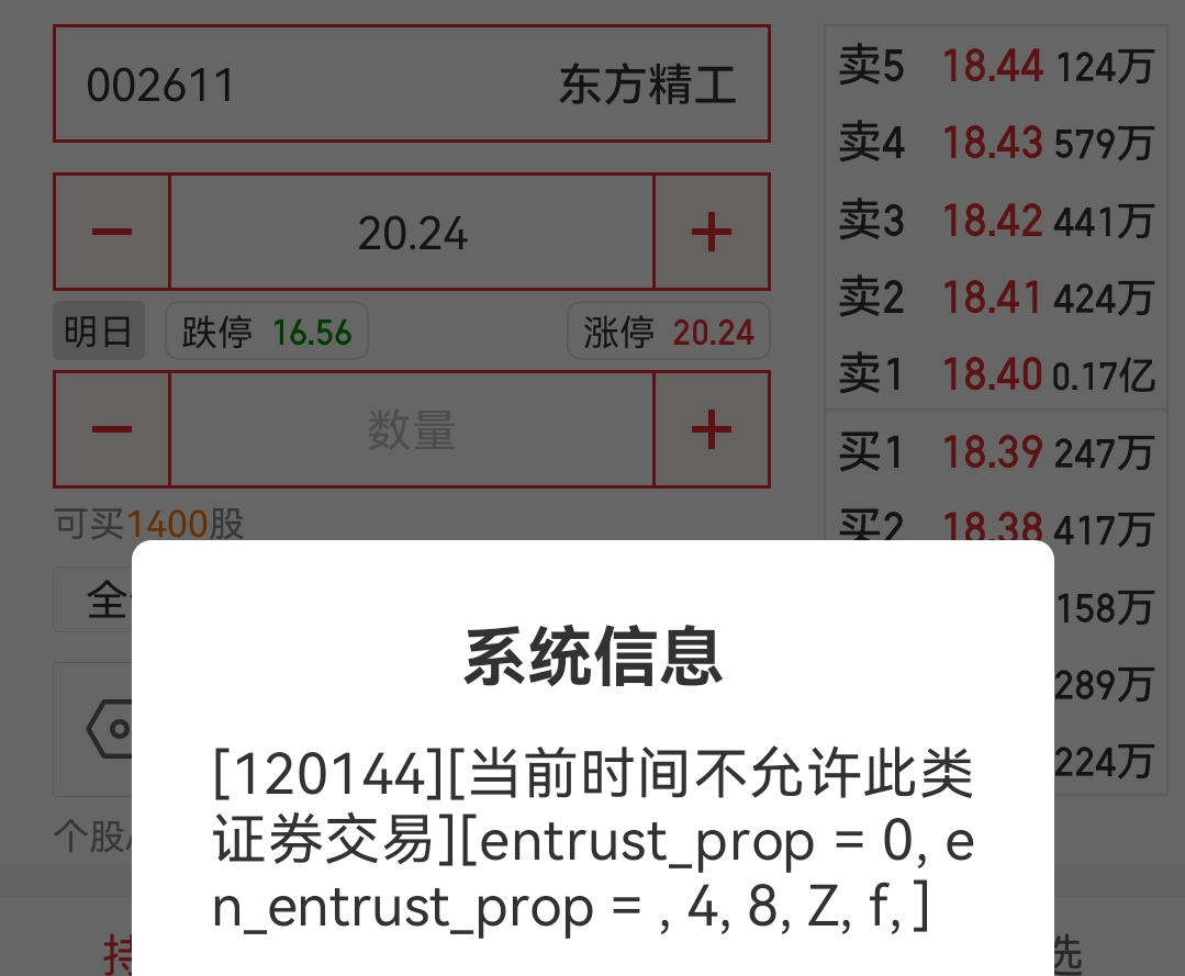 $东方精工(SZ002611)$ 为什么不让挂单?