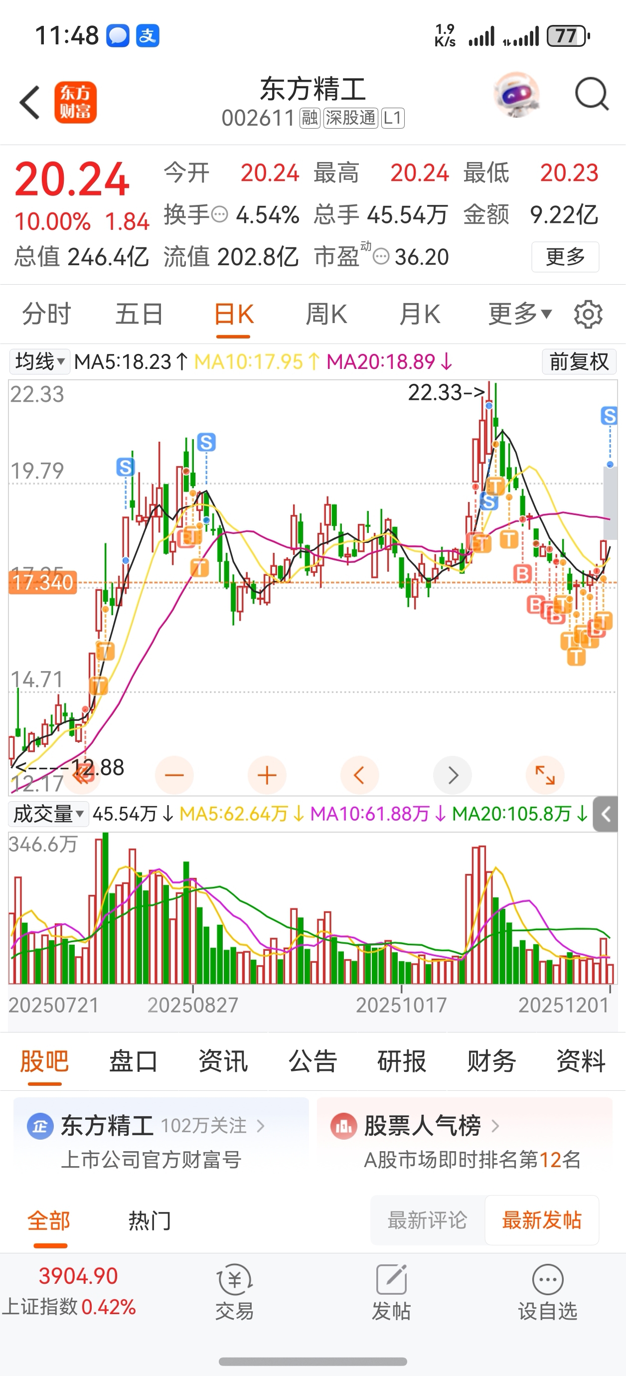 $东方精工(SZ002611)$ 一直看好东方,果然可以