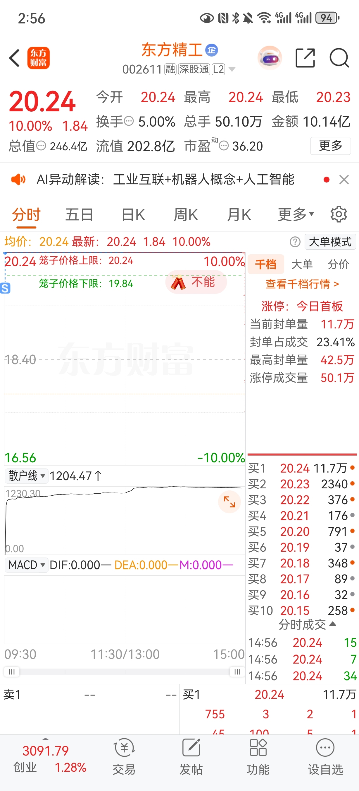$东方精工(SZ002611)$ 每涨一个板卖出2层仓位,不求收益最大化,本金保住优先,祝在车上的xdm一起发财!