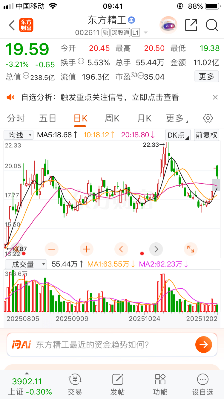 $东方精工(SZ002611)$ 昨天一字涨停板,今天没有溢价就算了,还暴跌5%,能不能少跌一丢丢呀,这样子让唱多的情何以堪。