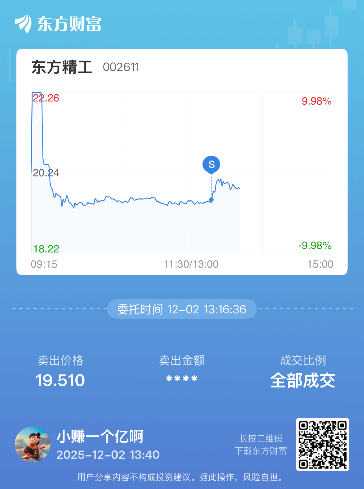 委托标的:买卖方向:笔记:晚一分钟卖就好了