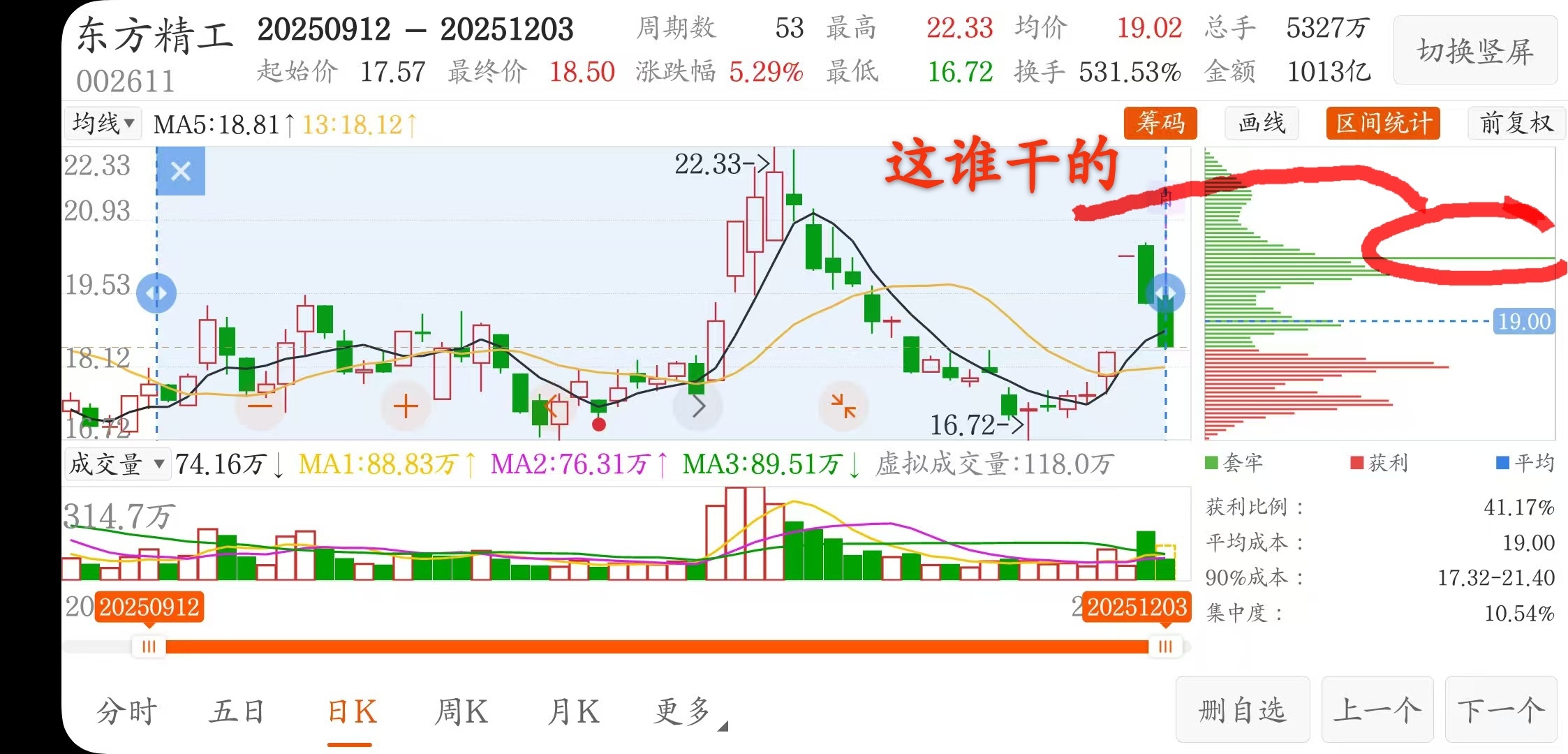 $东方精工(SZ002611)$ 这个是哪个游资被套住了
