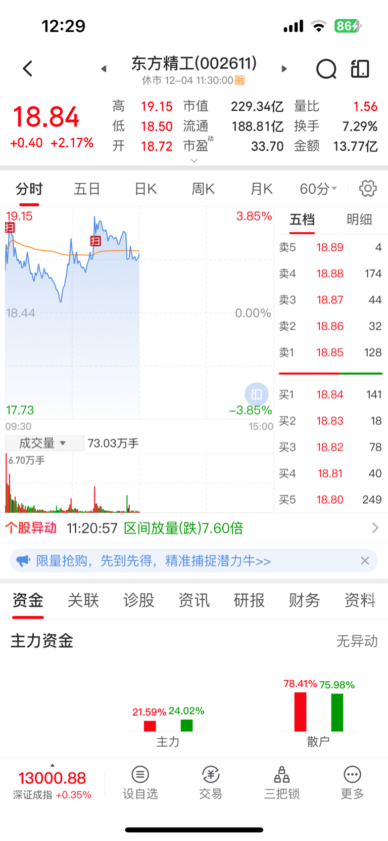 $东方精工(SZ002611)$ 上午有主力扫货!下午拉升起来