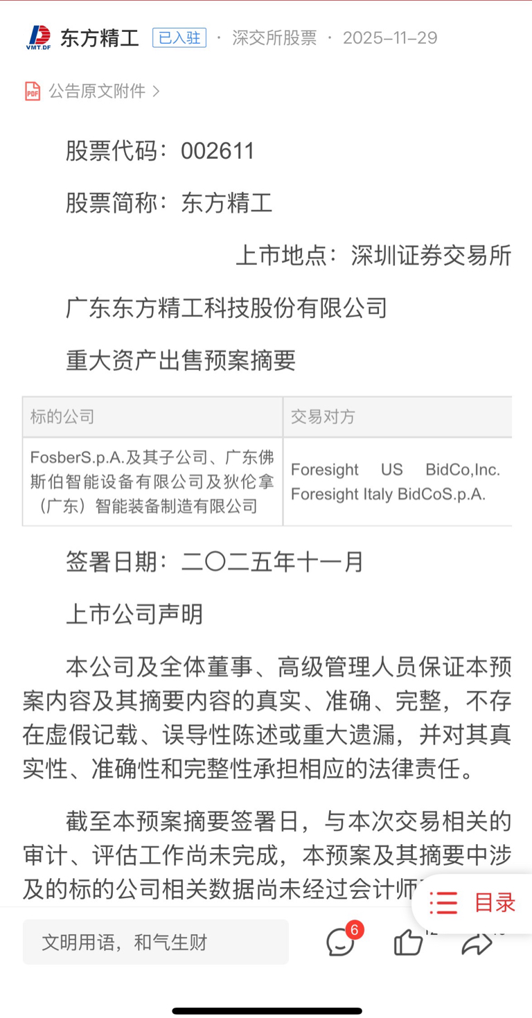 $东方精工(SZ002611)$ 11月29号就已经出公告了,现在只是挂出来已经是十八手的信息了,不用大惊小怪。