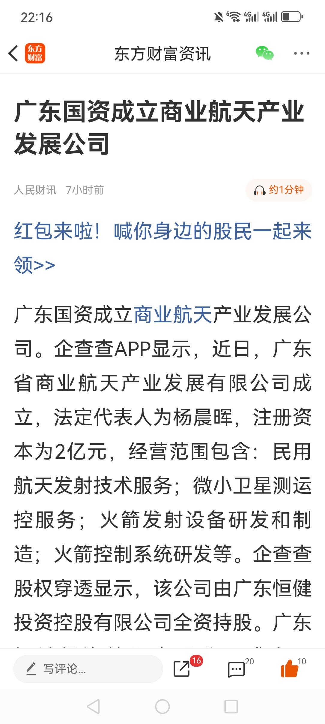 广东成立商业航天发展公司,东方精工也有商业航天概念,东财怎么没添加