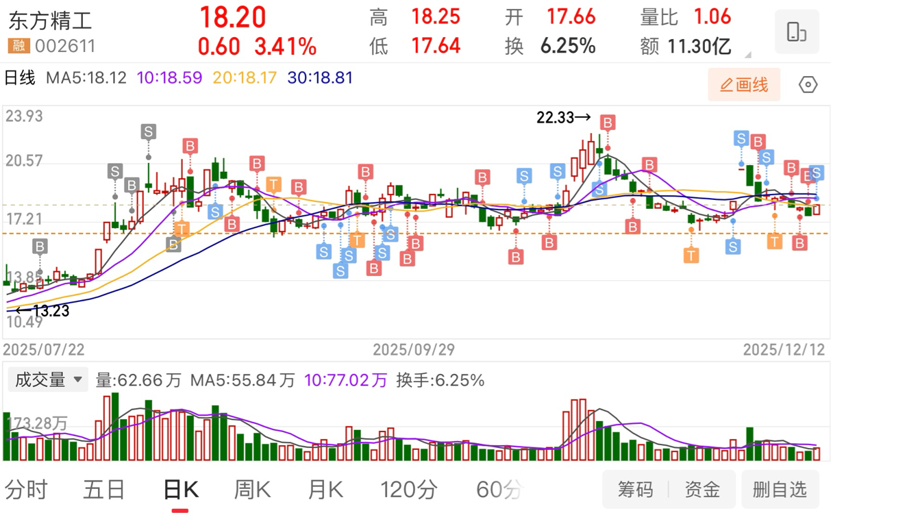 $东方精工(SZ002611)$ 昨天17.61加仓的18.21已经t出,前两天18.1,17.91的均锁仓,重仓操作一只票等待32卖出