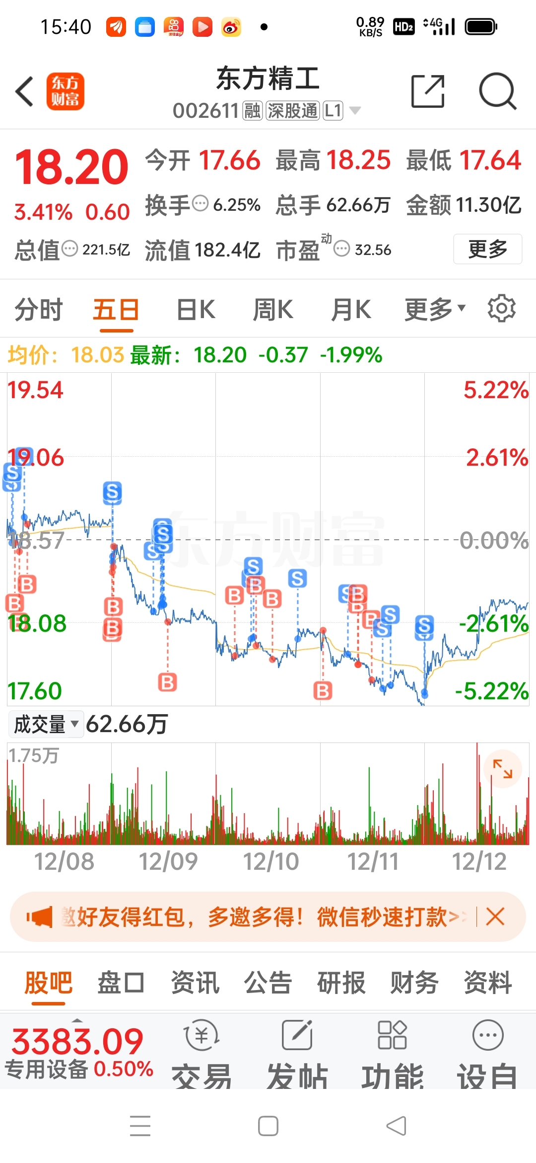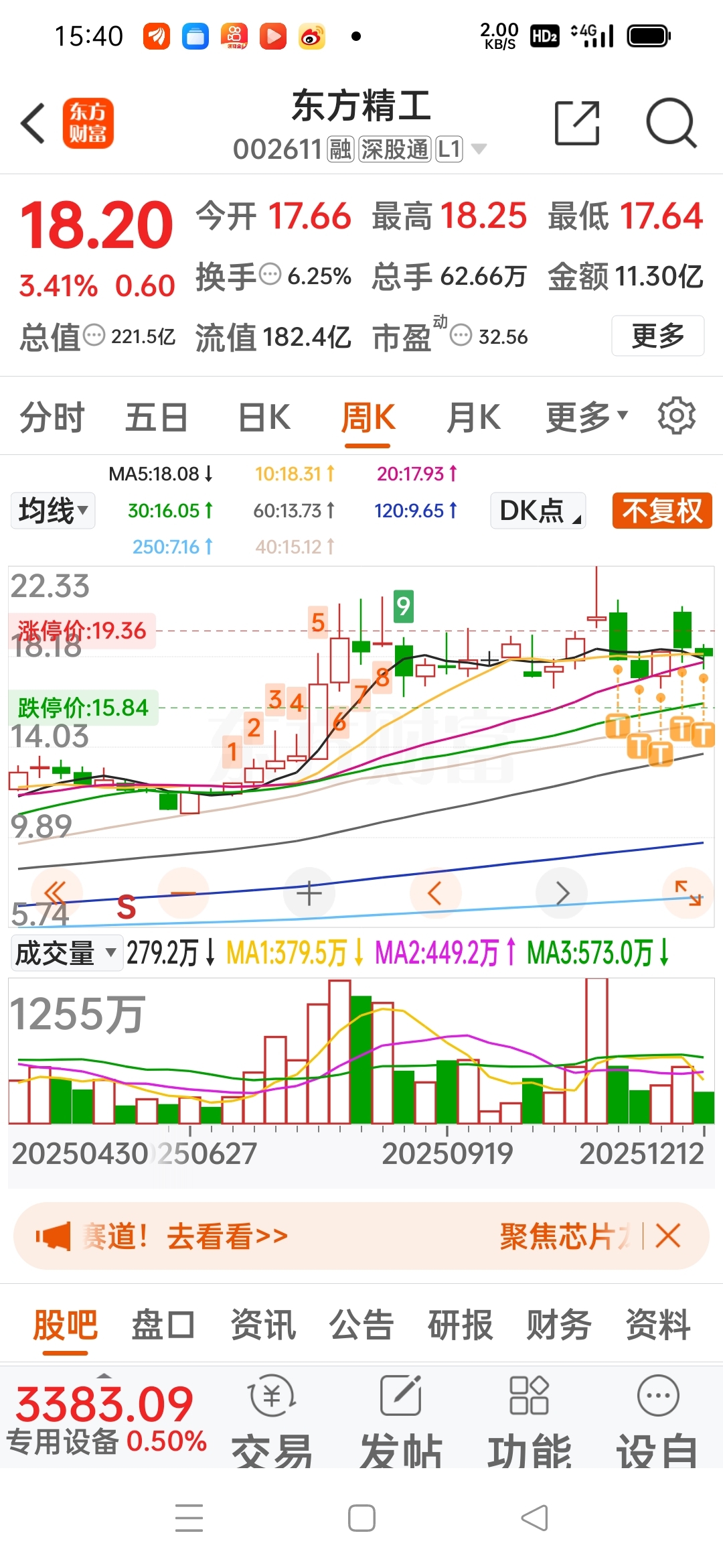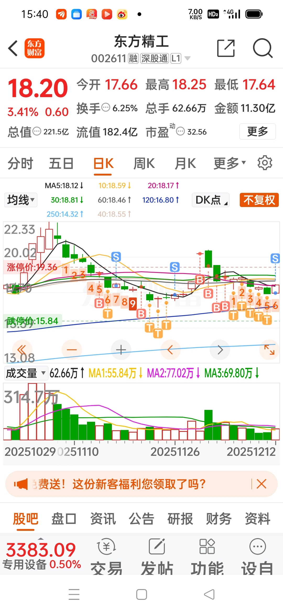 决定,再干东方精工,5日线金叉10日线时,轻仓上车;5日线金叉20日线时,加仓。即使如我所愿,跌到16.72,跌到120日线,没达到上述条件,不抄底,不抄底,不抄底。