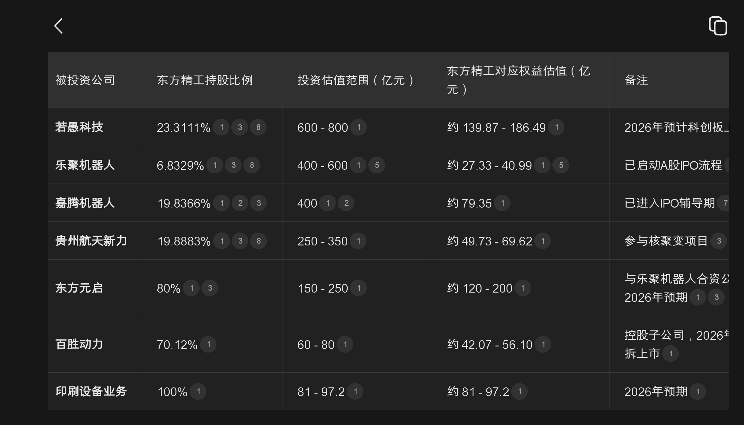 基于上表数据,我们可以计算出东方精工所持股权在2026年的预期估值总和: