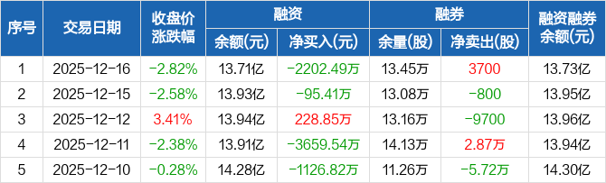 东方精工:融资净偿还2202.49万元,融资余额13.71亿元(12-16)