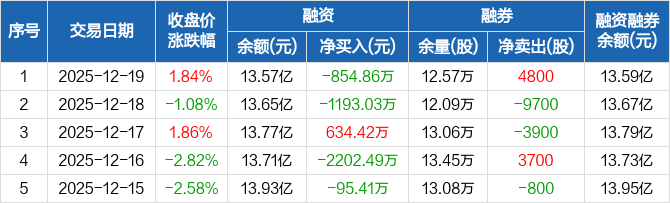东方精工:融资净偿还854.86万元,融资余额13.57亿元(12-19)