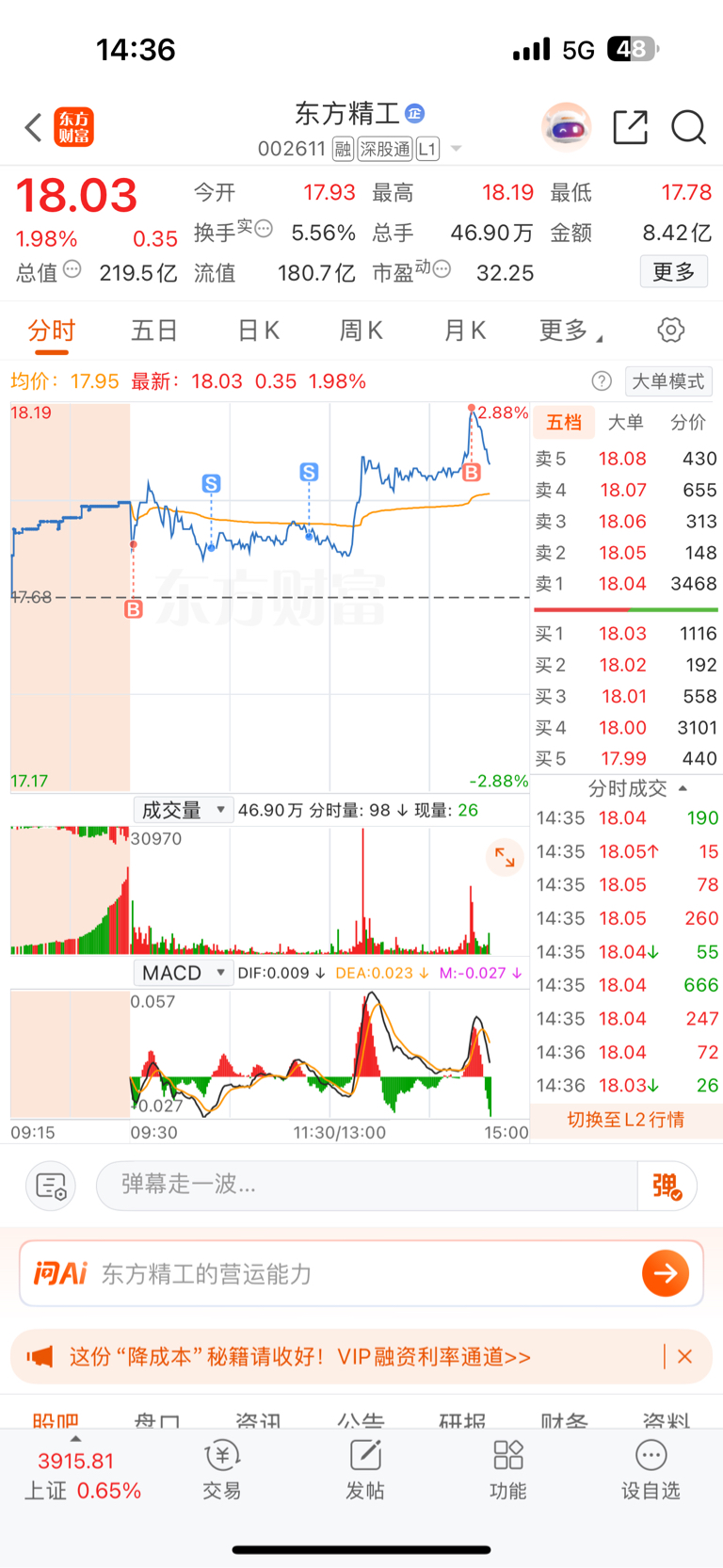 $东方精工(SZ002611)$ NMB你真会玩啊