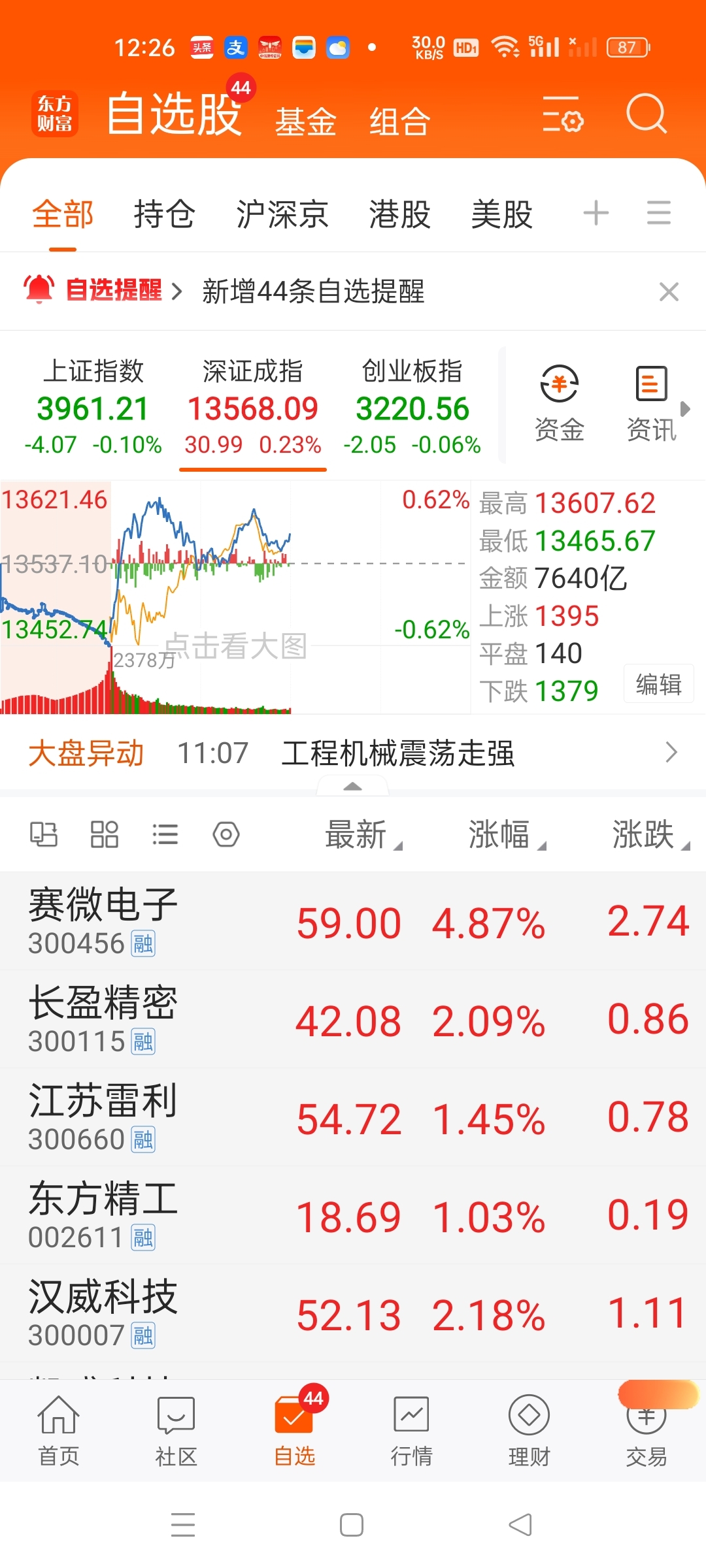 $东方精工(SZ002611)$ 上午收盘前11:28开始,机器人方向的汉威科技 东方精工 江苏雷利 长盈精密等通通都突然放巨量。