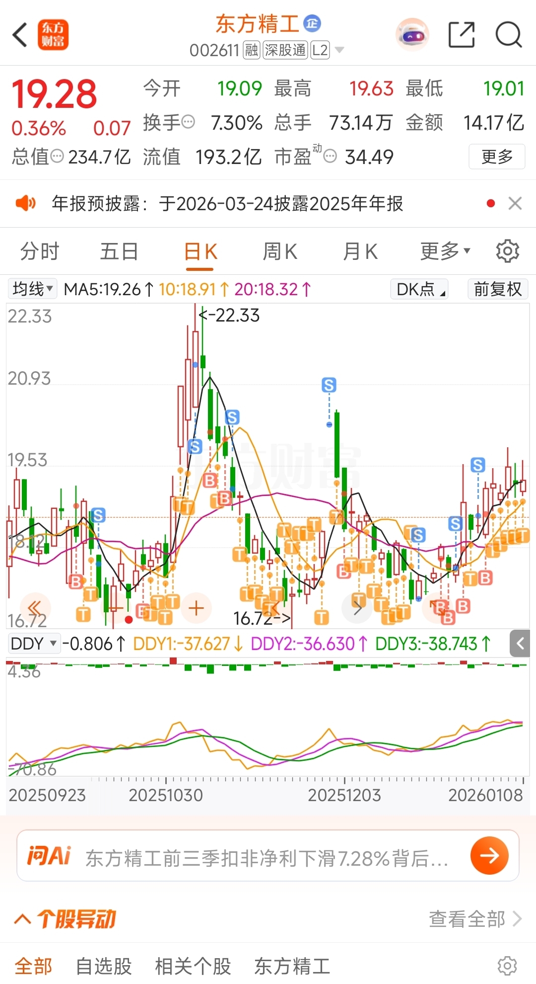 $东方精工(SZ002611)$ 大家不要怕以我的经验,17-17.5买,19-19.5卖,加上做T这几个能赚不少