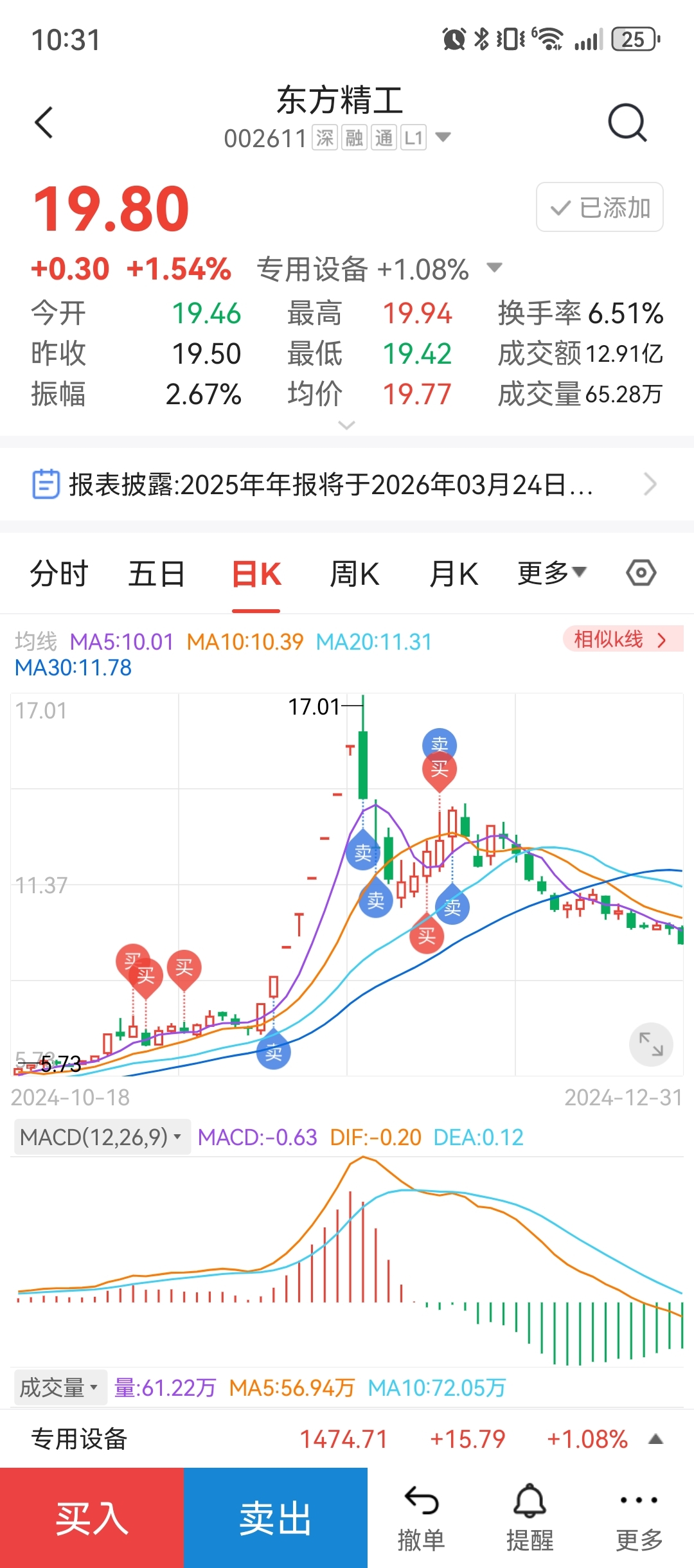 $东方精工(SZ002611)$ 时隔一年的我又回来了,再次建底仓