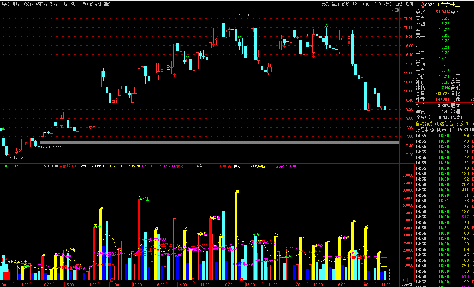 太惨了!东方精工近三个月从21.84元跌到18.13元,累计下跌16.99%,单边阴跌无反弹,谁抄底谁被套,别再抱有任何幻想