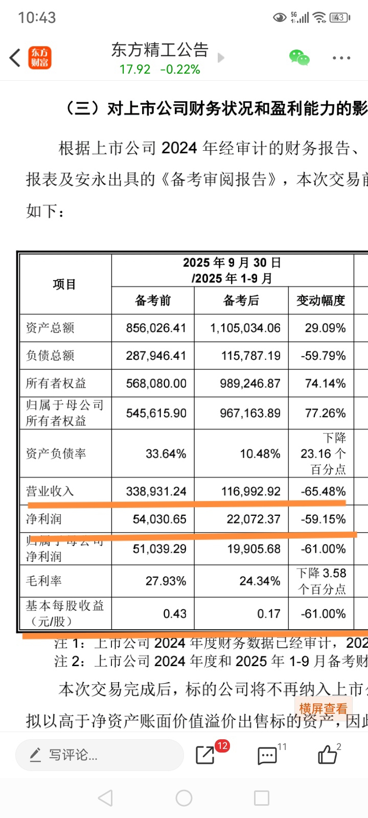 $东方精工(SZ002611)$ 交易后对上市公司的影响
