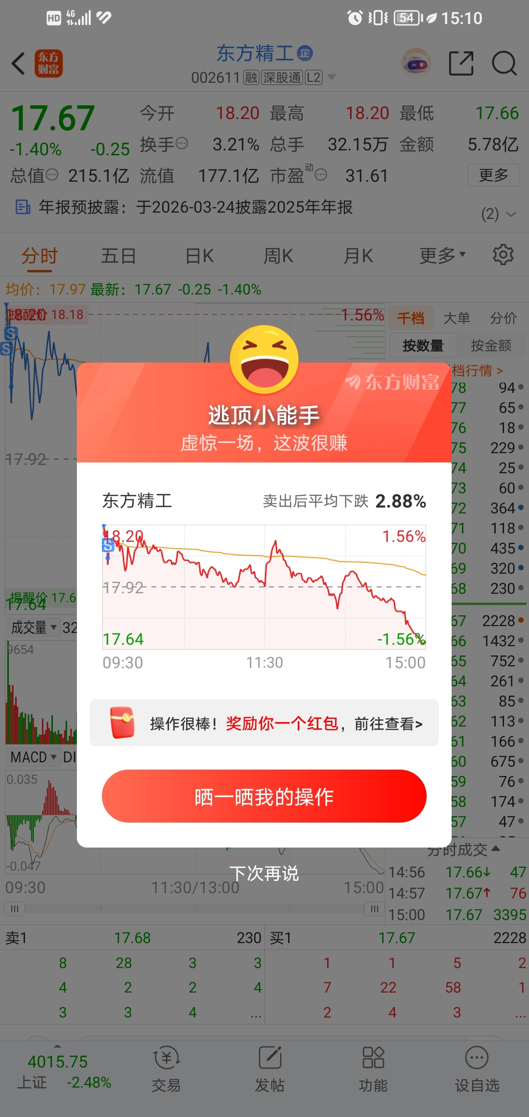 $东方精工(SZ002611)$ 幸好开盘卖了,下跌趋势已成。