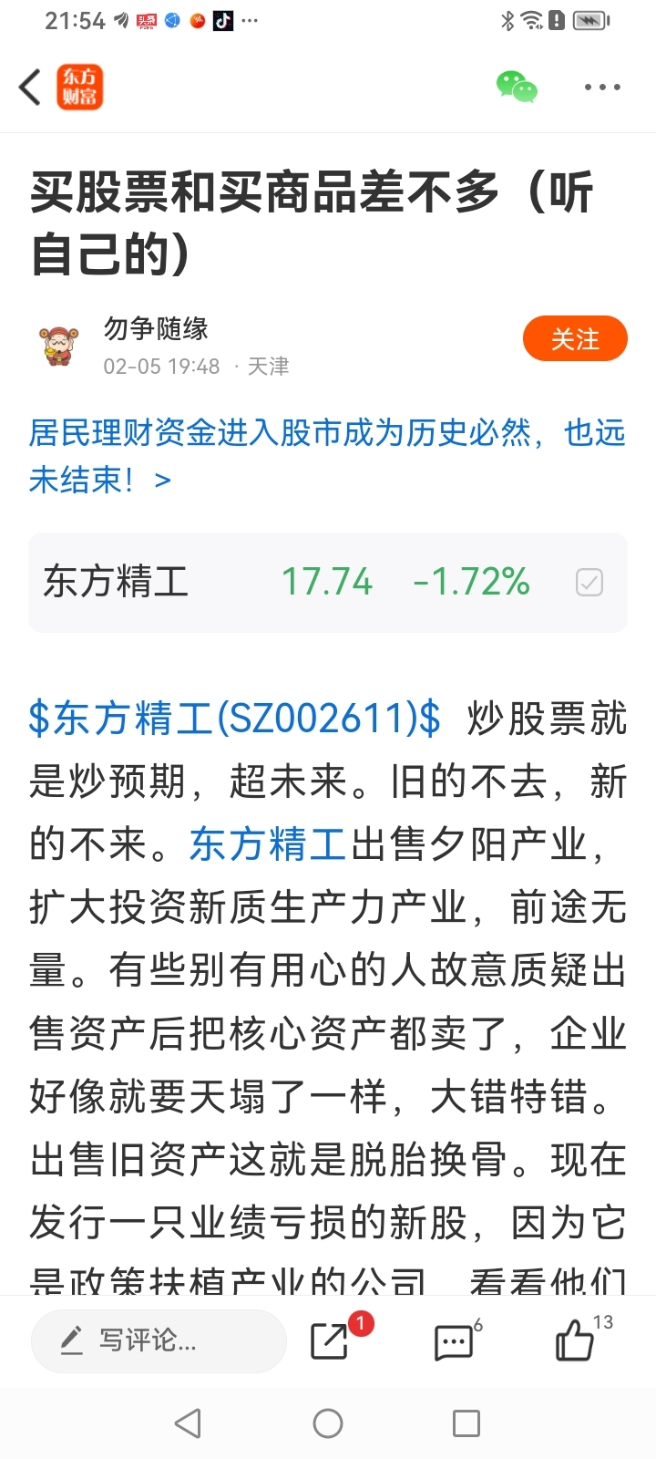 温馨提示: 1.根据《证券法》规定,禁止编造、传播虚假信息或者误导性信息,扰乱证券市场;2.用户在本社区发表的所有资料、言论等仅代表个人观点,与本网站立场无关,不对您构成任何投资建议。用户应基于自己的独立判断,自行决定证券投资并承担相应风险。《东方财富社区管理规定》