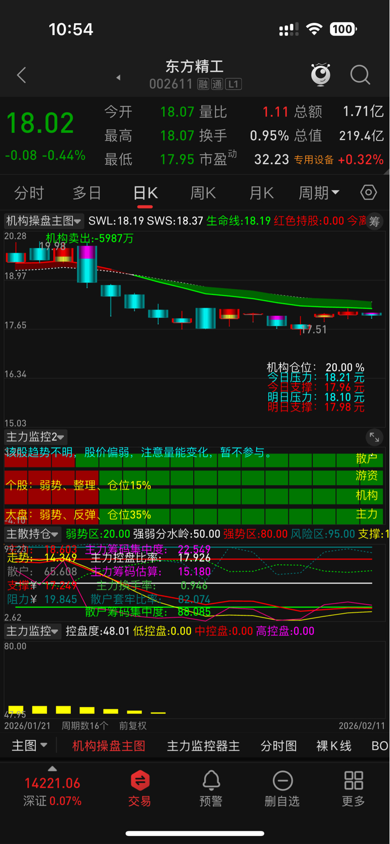 $东方精工(SZ002611)$ 主力资金早已在高位的时候把筹码都抛出来了,每天的进出大部分都是散户在进进出出,短时间内要想有行情是不可能的,要么就熬上几个月看看会不会有下一波主力进来,要么就趁今天热门版块回调的时候建仓换股