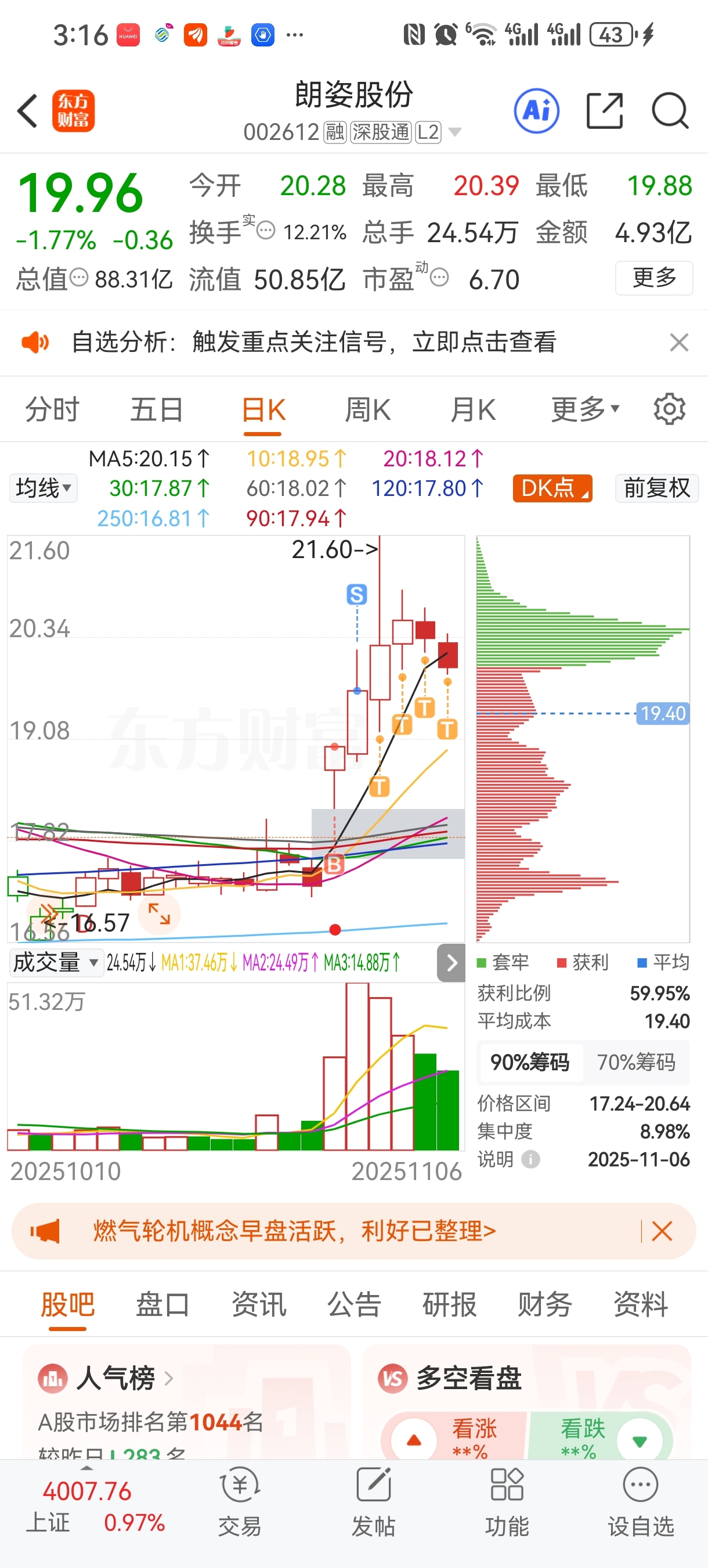 $朗姿股份(SZ002612)$ 每天半仓做t,随你老庄怎么玩,明天再不拉我可就砸你了等你下一波放量了