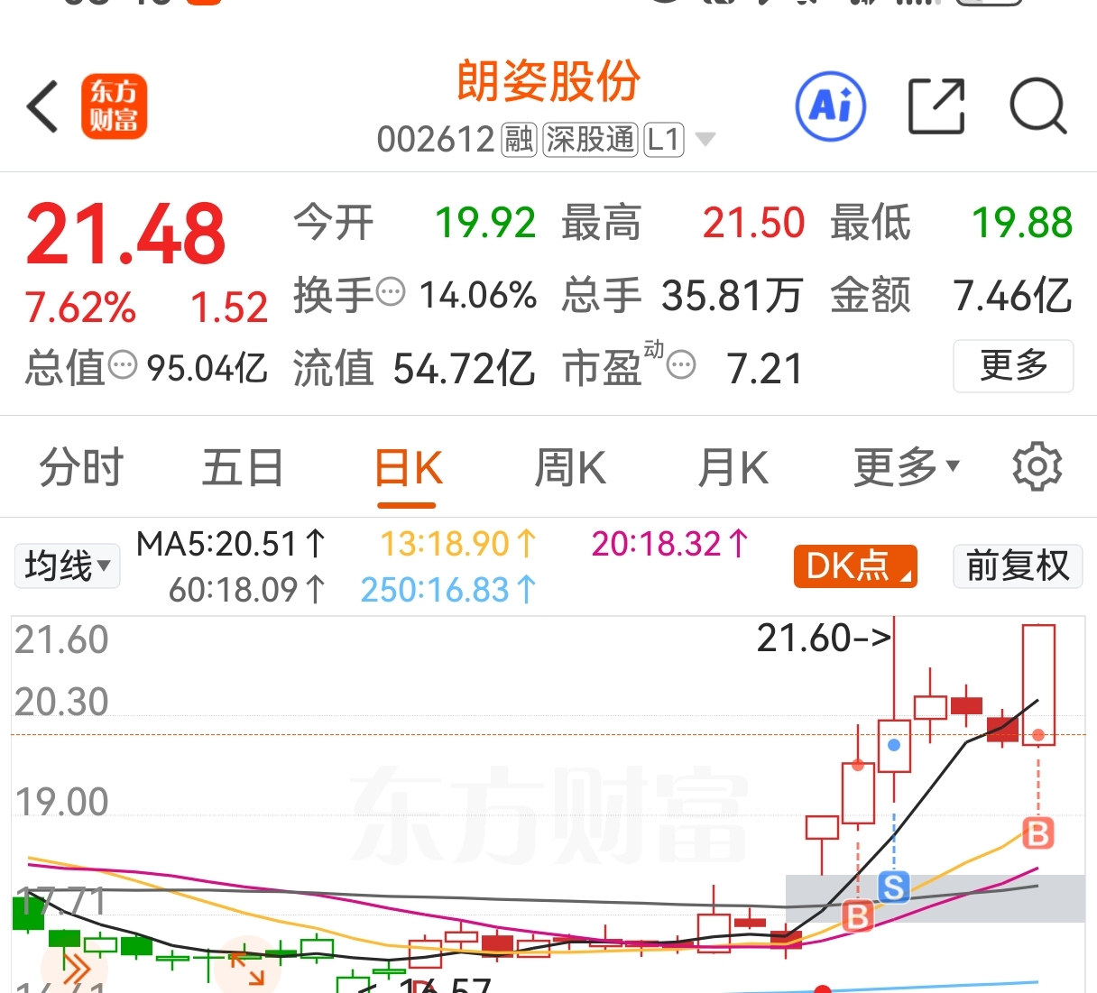 $朗姿股份(SZ002612)$ 上次卖飞了,今天又回来了周一继续肉