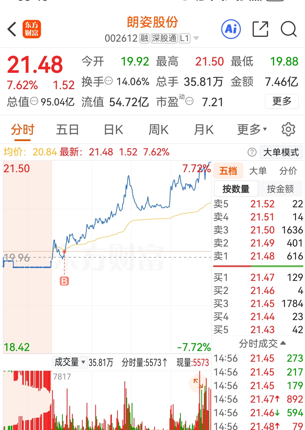 $朗姿股份(SZ002612)$ 兄弟们,拿好啊这走势下周大肉啊