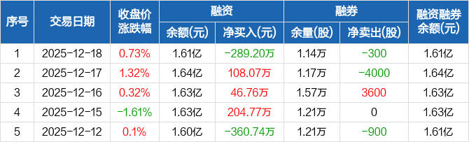 朗姿股份:融资净偿还289.2万元,融资余额1.61亿元(12-18)