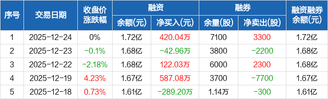 朗姿股份:融资净买入420.04万元,融资余额1.72亿元(12-24)