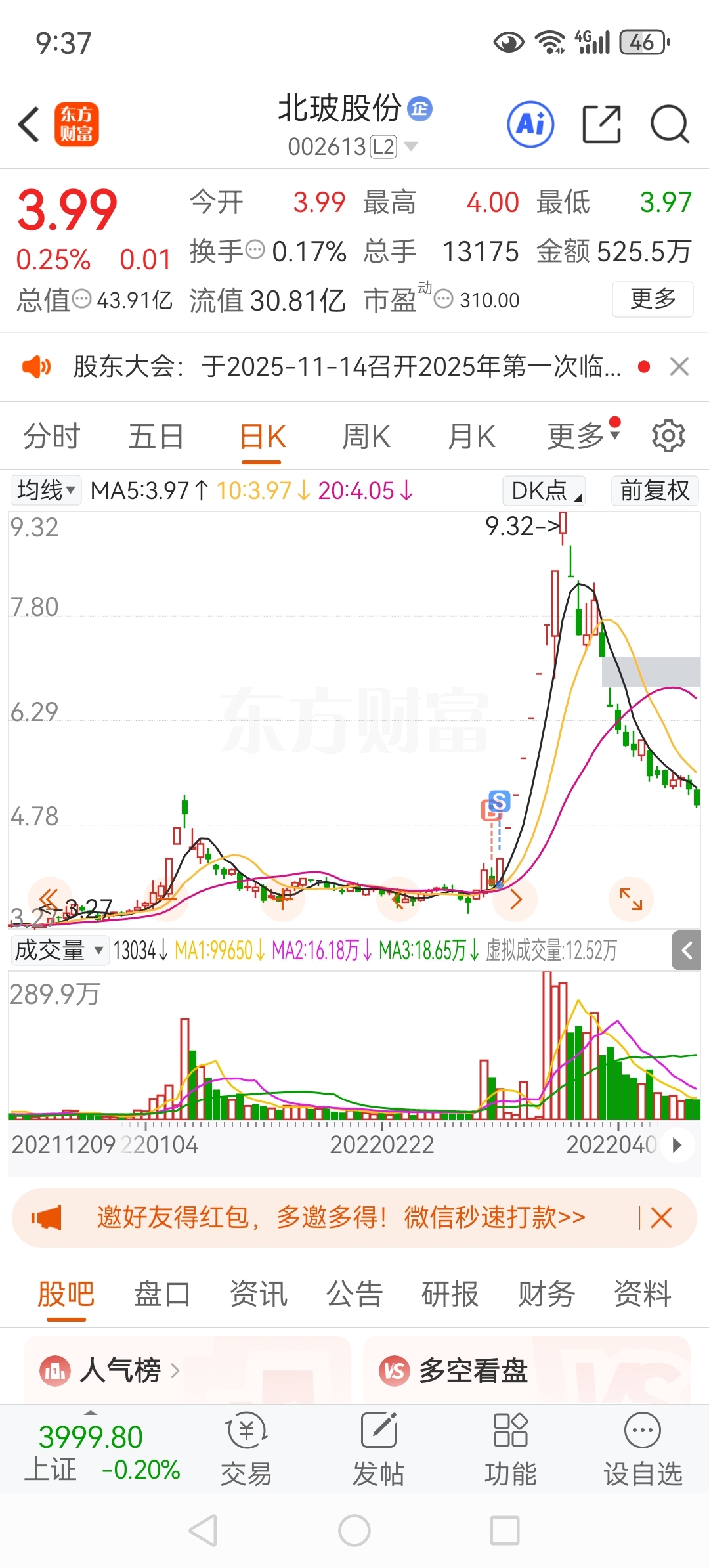 $北玻股份(SZ002613)$ 人生有一种意难平,叫做北玻股份。