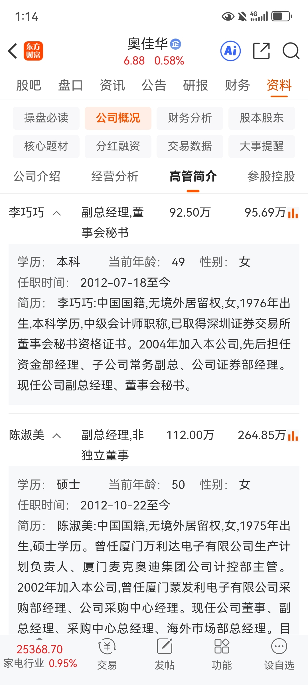 $奥佳华(SZ002614)$ 鱼叔没猜错滴话,每个老板都有一个密切关联的女高管,一个帮老板管资金滴,一个帮老板管采购的,非同一般
