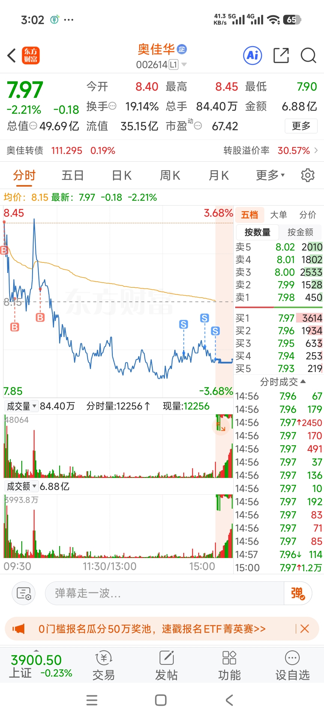 $奥佳华(SZ002614)$ 浮盈加仓,判断错了。走势不符合预期,割肉