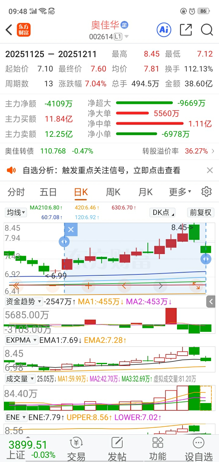 奥佳华(002614)7.81元之下“对敲”吸筹,“小儿科”伎俩。筹码!!
