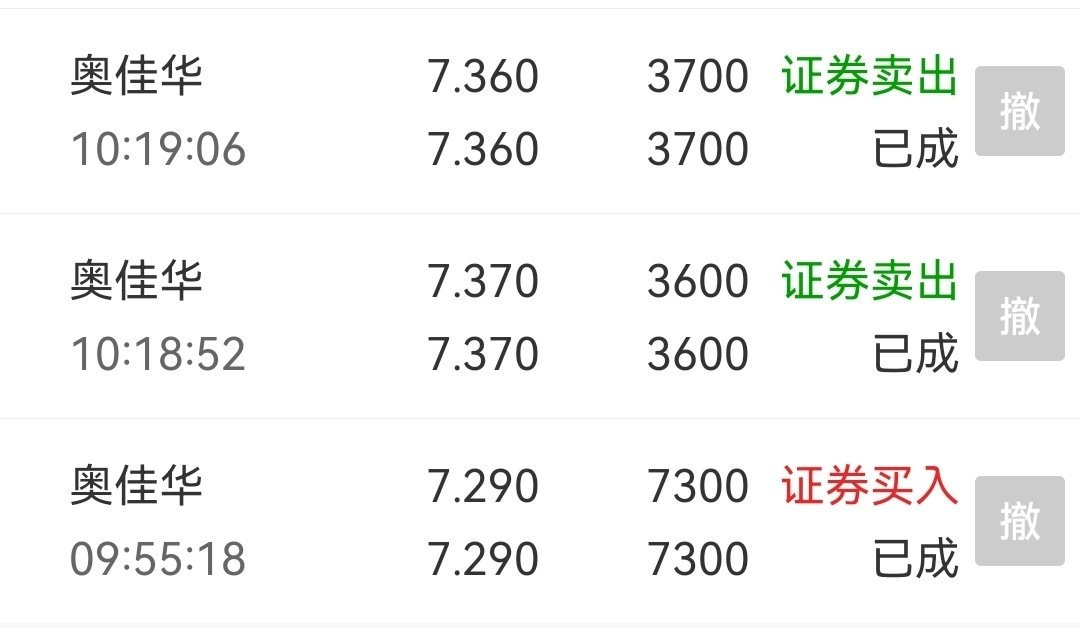 $奥佳华(SZ002614)$ 我擦,囸大发了,鱼叔也是第一次碰到这种情况,鱼叔729买,一个点737,736卖居然成交了