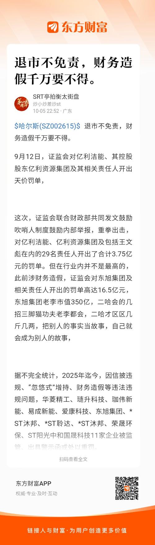 $哈尔斯(SZ002615)$ 退市不免责,财务造假千万要不得。
