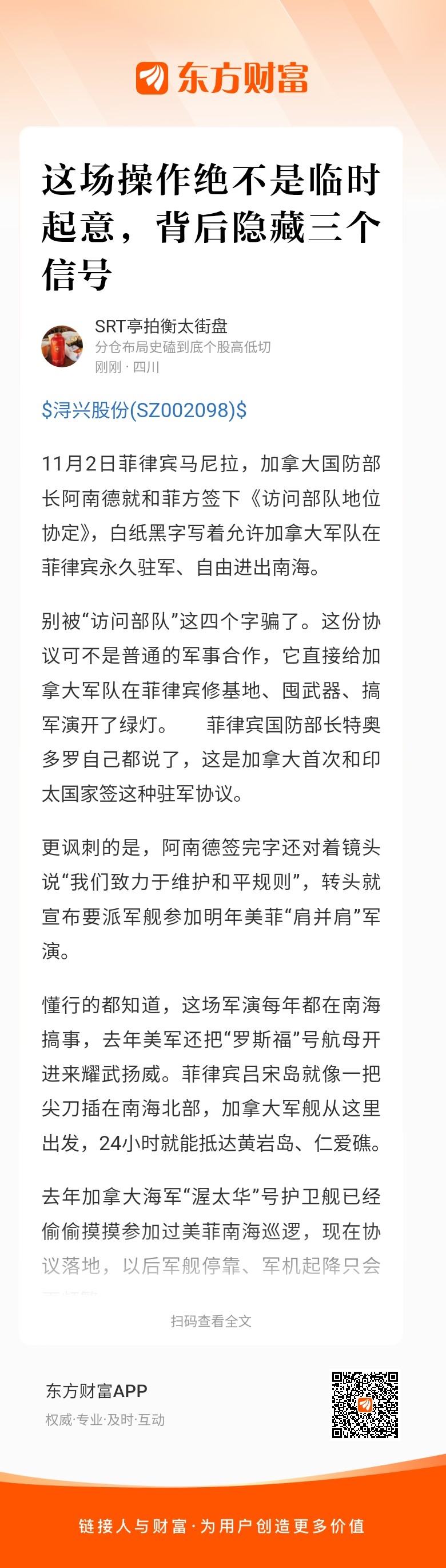 郑重声明:用户在财富号/股吧/博客等社区发表的所有信息(包括但不限于文字、视频、音频、数据及图表)仅代表个人观点,与本网站立场无关,不对您构成任何投资建议,据此操作风险自担。请勿相信代客理财、免费荐股和炒股培训等宣传内容,远离非法证券活动。请勿添加发言用户的手机号码、公众号、微博、微信及QQ等信息,谨防上当受骗!