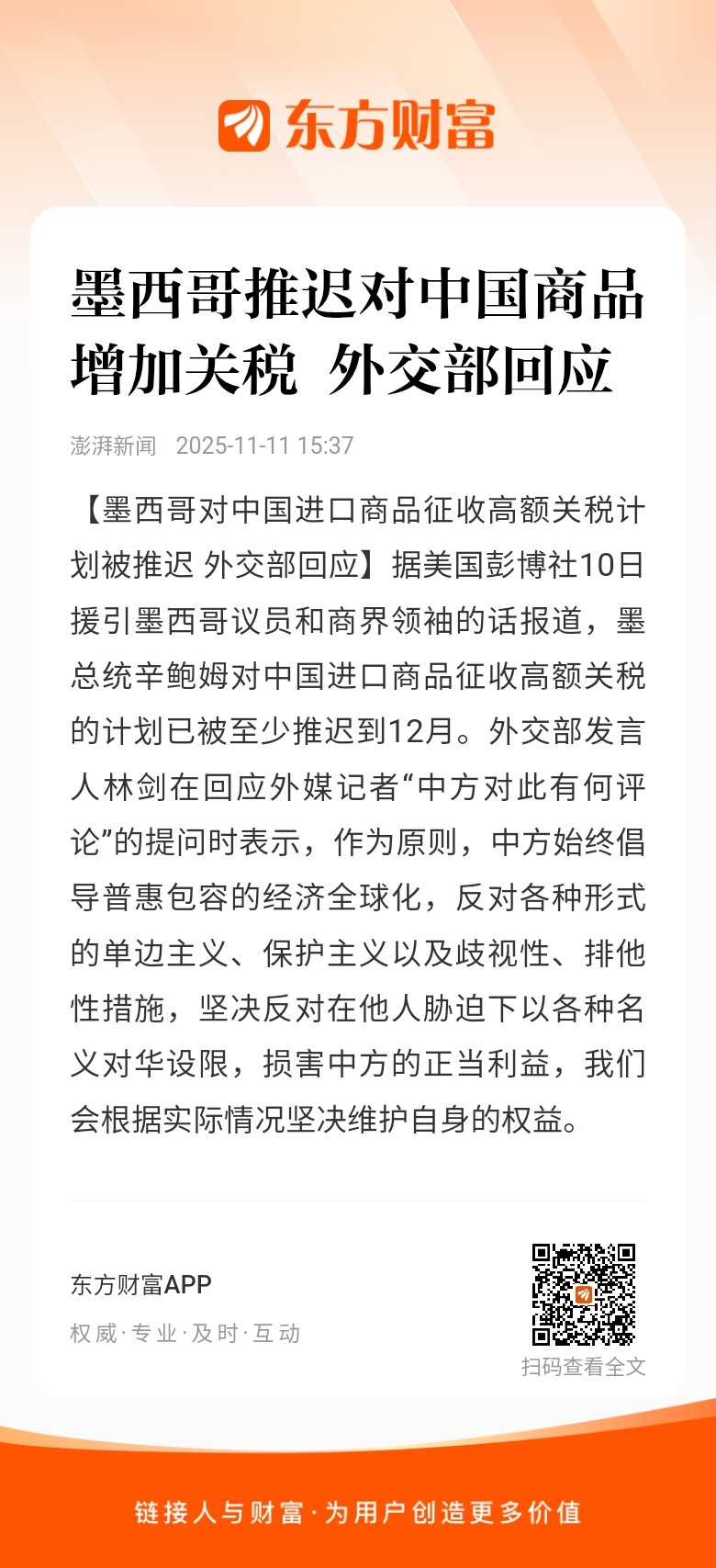 $哈尔斯(SZ002615)$ 251111东财新闻,为外交部点赞