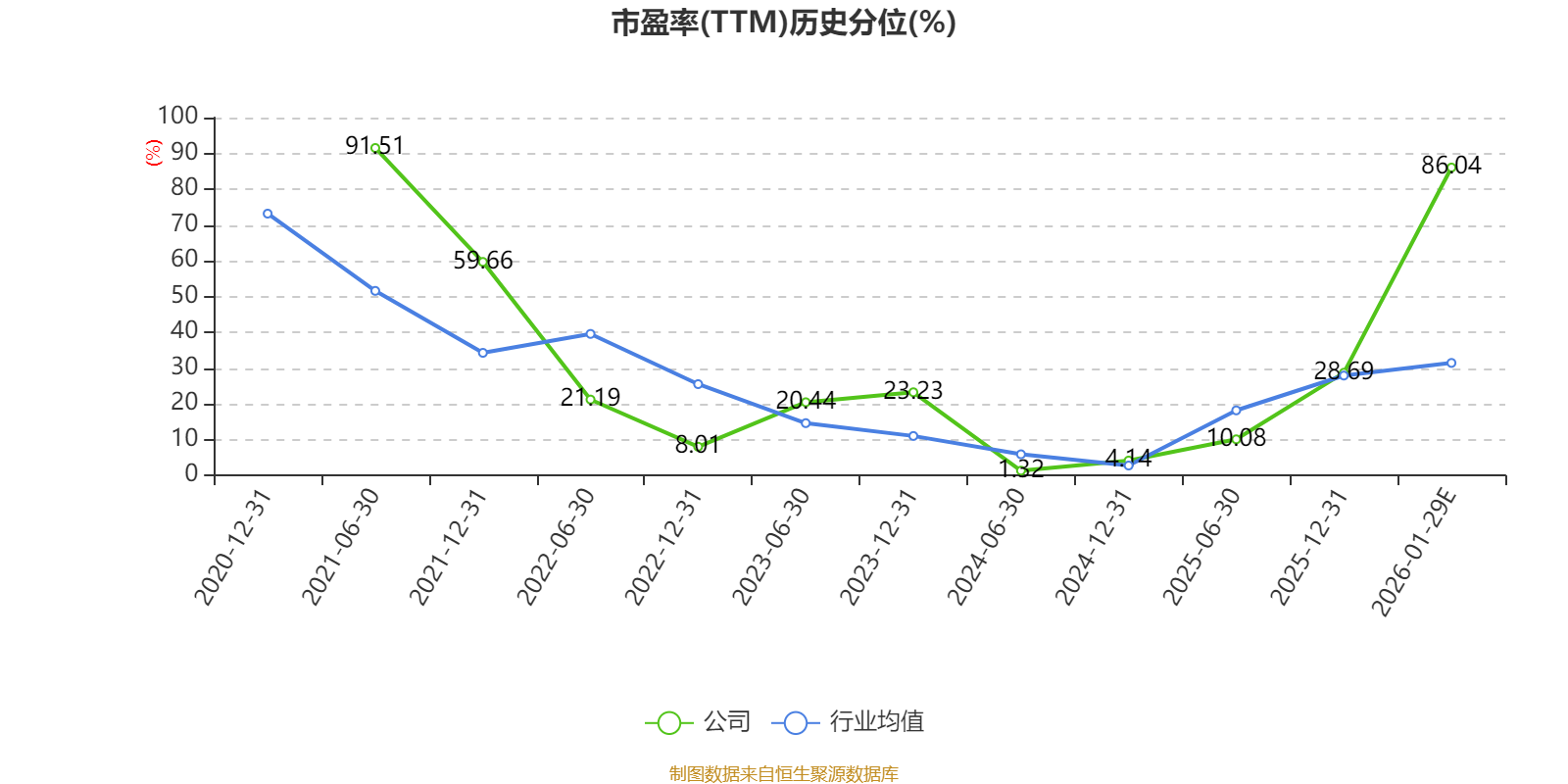 以本次披露业绩预告均值计算,公司近年市盈率(TTM)图如下所示: