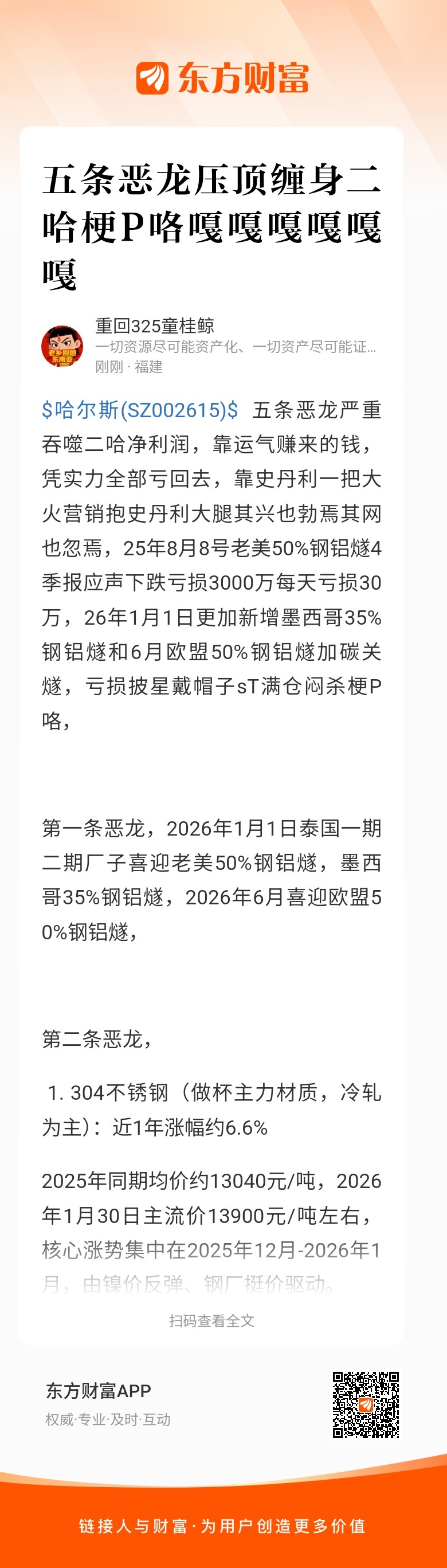 温馨提示: 1.根据《证券法》规定,禁止编造、传播虚假信息或者误导性信息,扰乱证券市场;2.用户在本社区发表的所有资料、言论等仅代表个人观点,与本网站立场无关,不对您构成任何投资建议。用户应基于自己的独立判断,自行决定证券投资并承担相应风险。《东方财富社区管理规定》