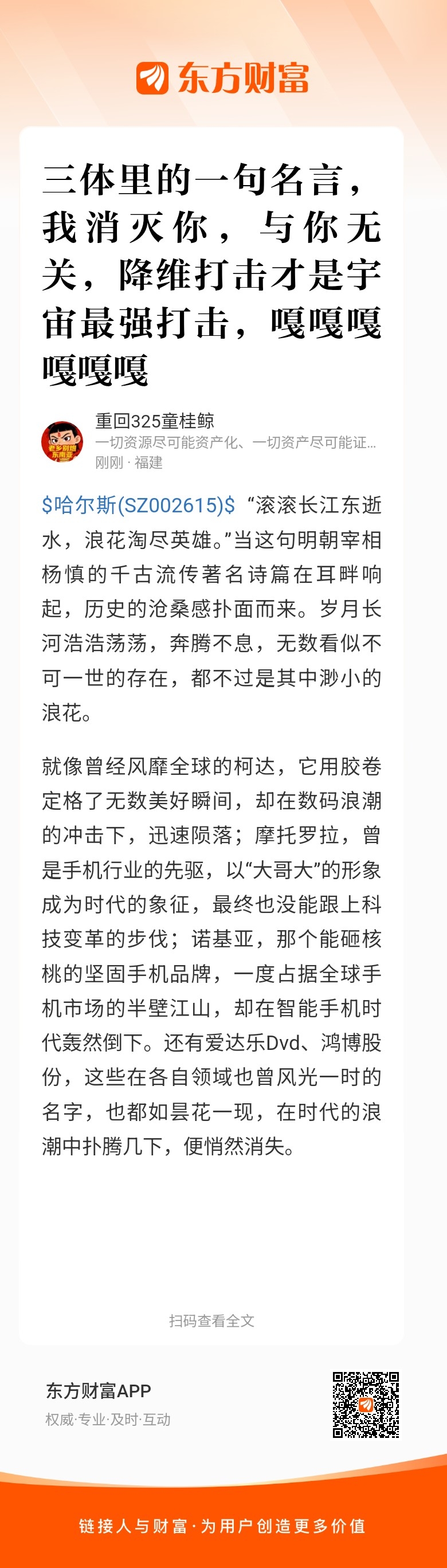 温馨提示: 1.根据《证券法》规定,禁止编造、传播虚假信息或者误导性信息,扰乱证券市场;2.用户在本社区发表的所有资料、言论等仅代表个人观点,与本网站立场无关,不对您构成任何投资建议。用户应基于自己的独立判断,自行决定证券投资并承担相应风险。《东方财富社区管理规定》