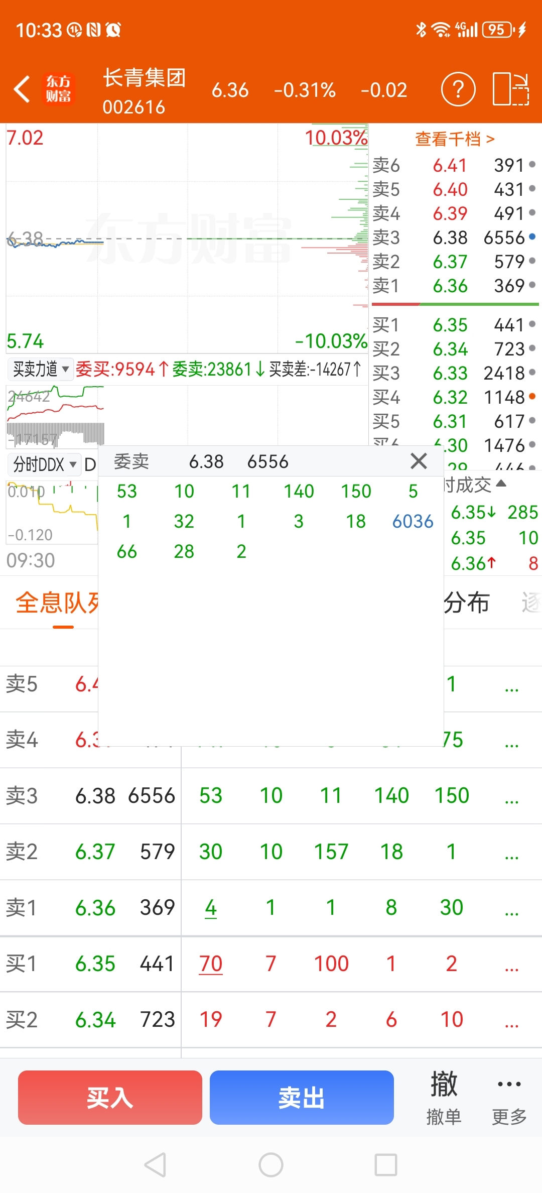 $长青集团(SZ002616)$ 有个恶庄在6.38挂了6036手压单吸筹!#炒股日记#