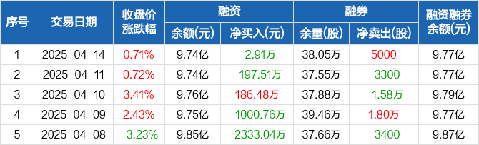 露笑科技:融资净偿还2.91万元,融资余额9.74亿元(04-14)