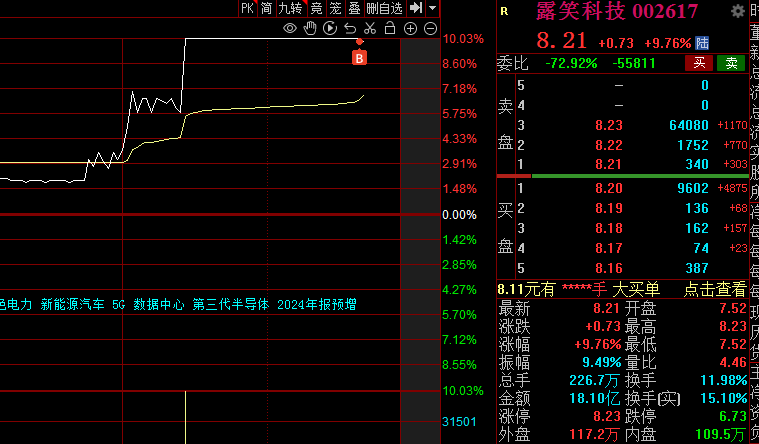 露笑科技 打板进了 5月21日