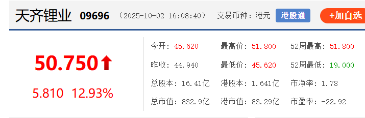 赣锋锂业涨11%,天齐锂业涨13%,港股通中国科技指数暴涨4%,恒生指数大幅上涨