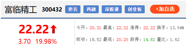 锂电池,电机暴涨:富临精工涨20%,巴拉德动力涨23%,天齐锂业涨13%