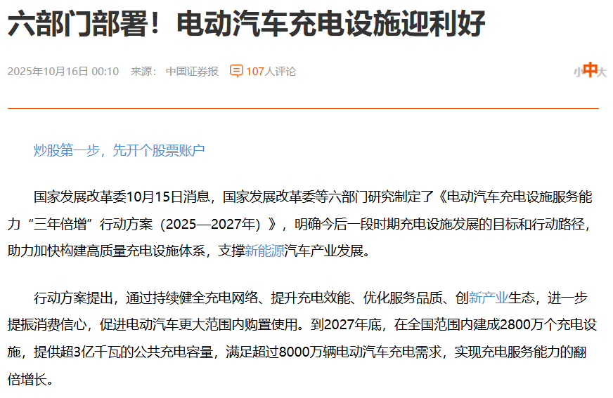 6部门:建设2800万的充电设施,3亿千万充电容量